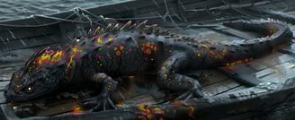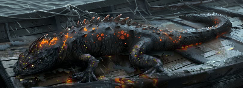 Salamanderen springer ombord på båden og udløser en flammeånde, som gør skade på dem begge og antænder båden. Aramil hakker den med sin hammer, men bemærker straks dens ekstreme varme og tager mere skade af at slå den. Salamanderen hvæser af dem, lige som Ayoa udløser et giftangreb, der overmander den lynhurtigt og til stor overraskelse for de to aspiranter.