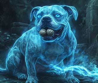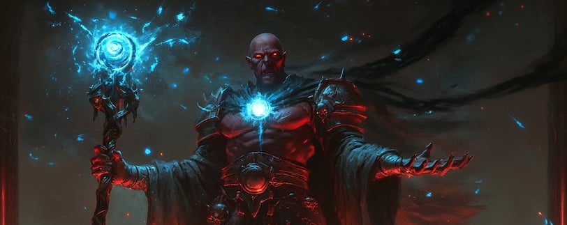 Han hævede begge hænder, knuste to blå sten mellem fingrene. En isnende kraft skyllede gennem rummet, og fra støvet synes to skyggeskikkelser at rejse sig – hylende, forvrængede ånder, bundet til hans vilje.