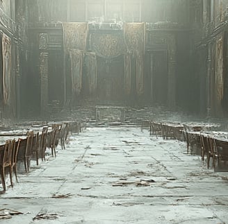 Ayoa fnyste ved synet, hendes natursans fornærmet af dette forfald. Aramil stirrede tænksomt på de tomme sale, en nagende mistanke voksende i hans sind. Eldar sagde intet, men hans blik vandrede over de tomme gange, som om han ledte efter noget.